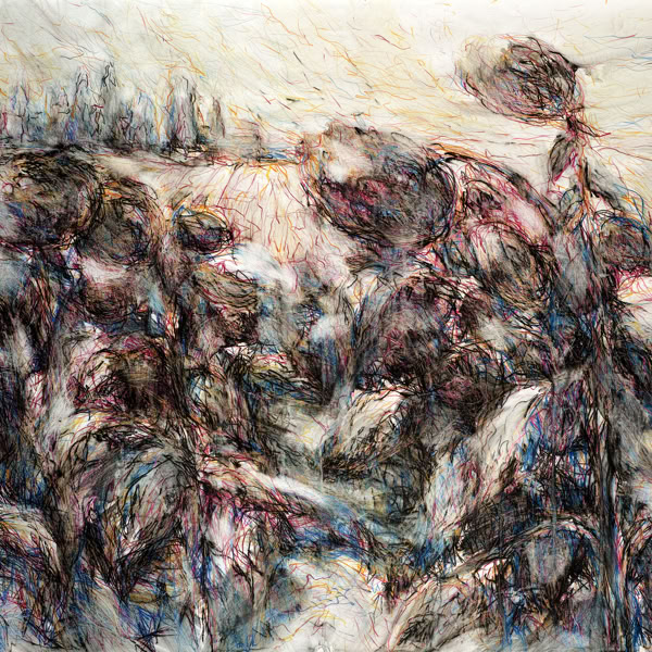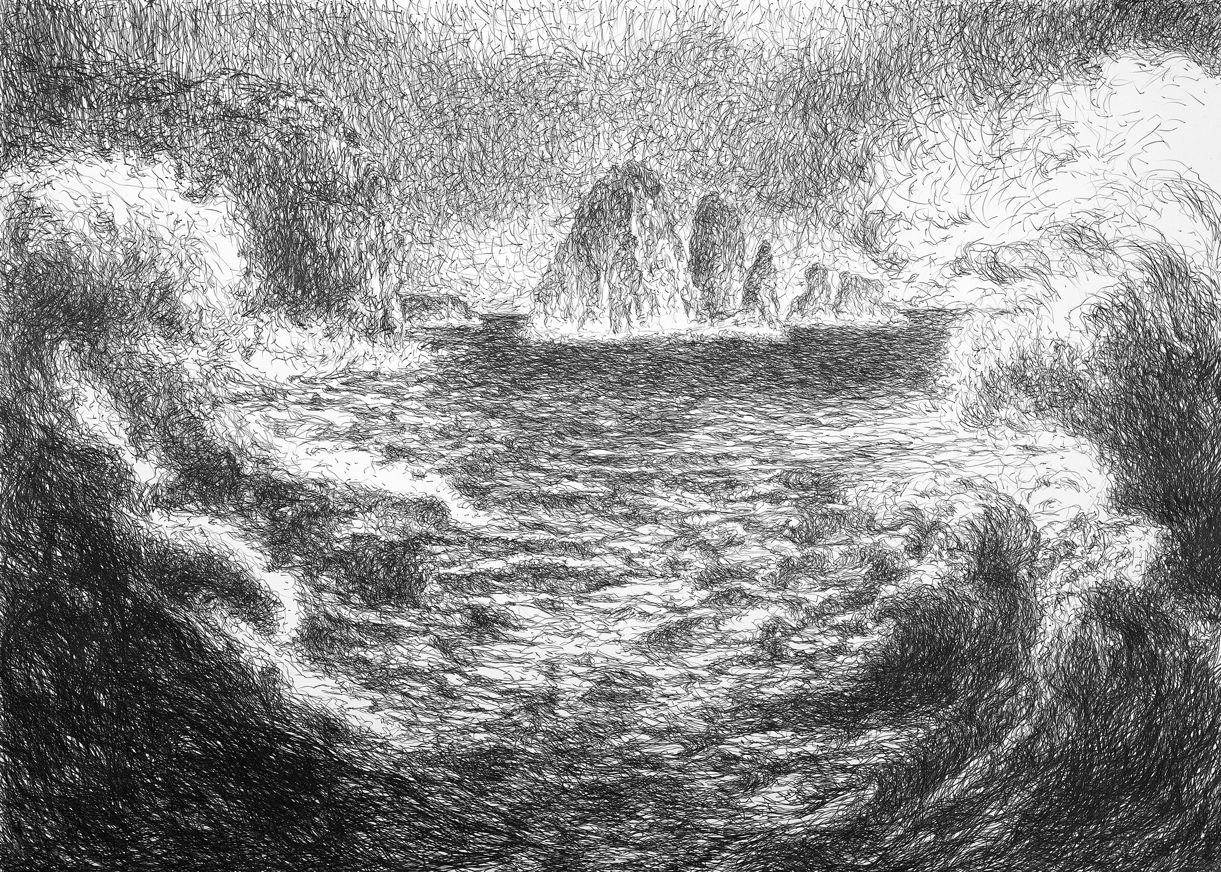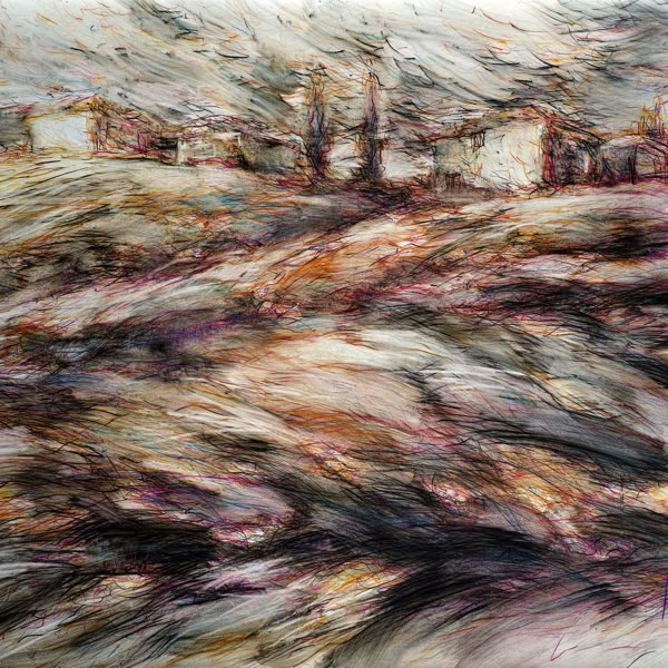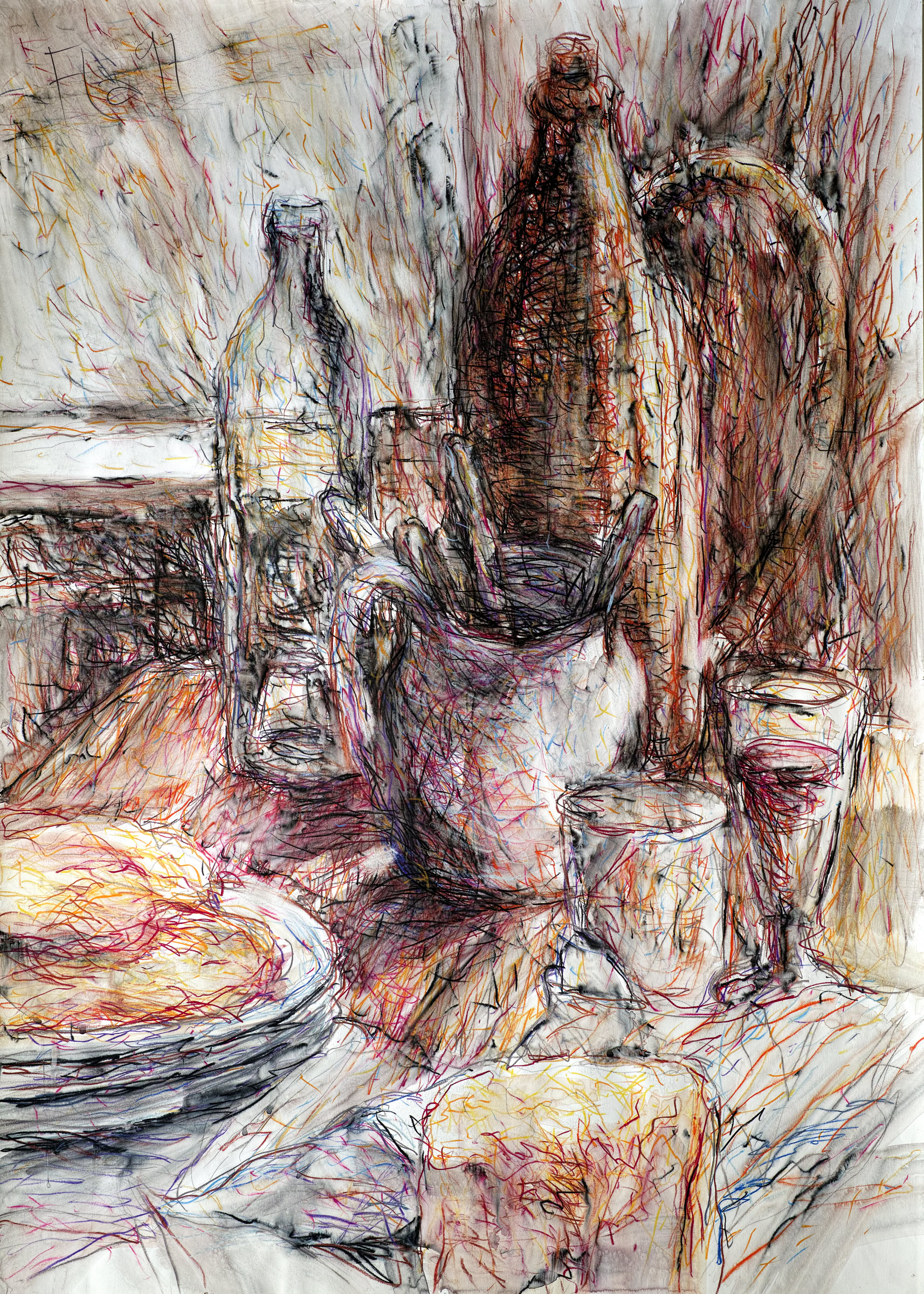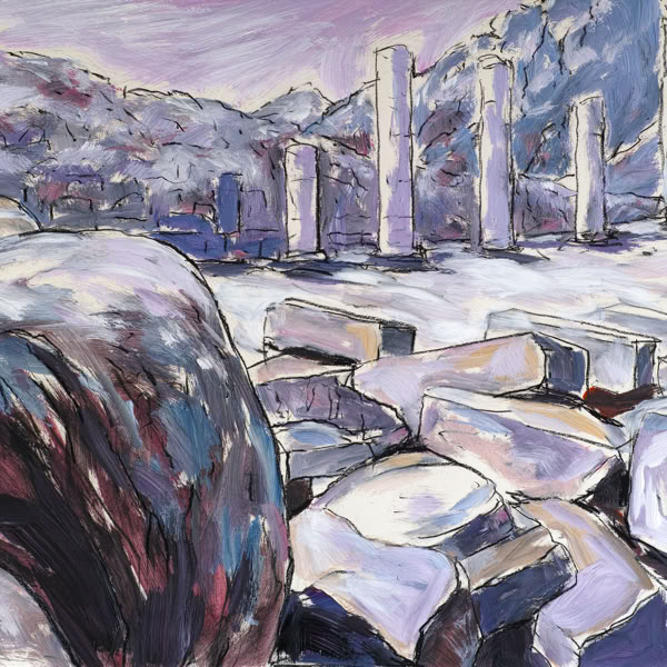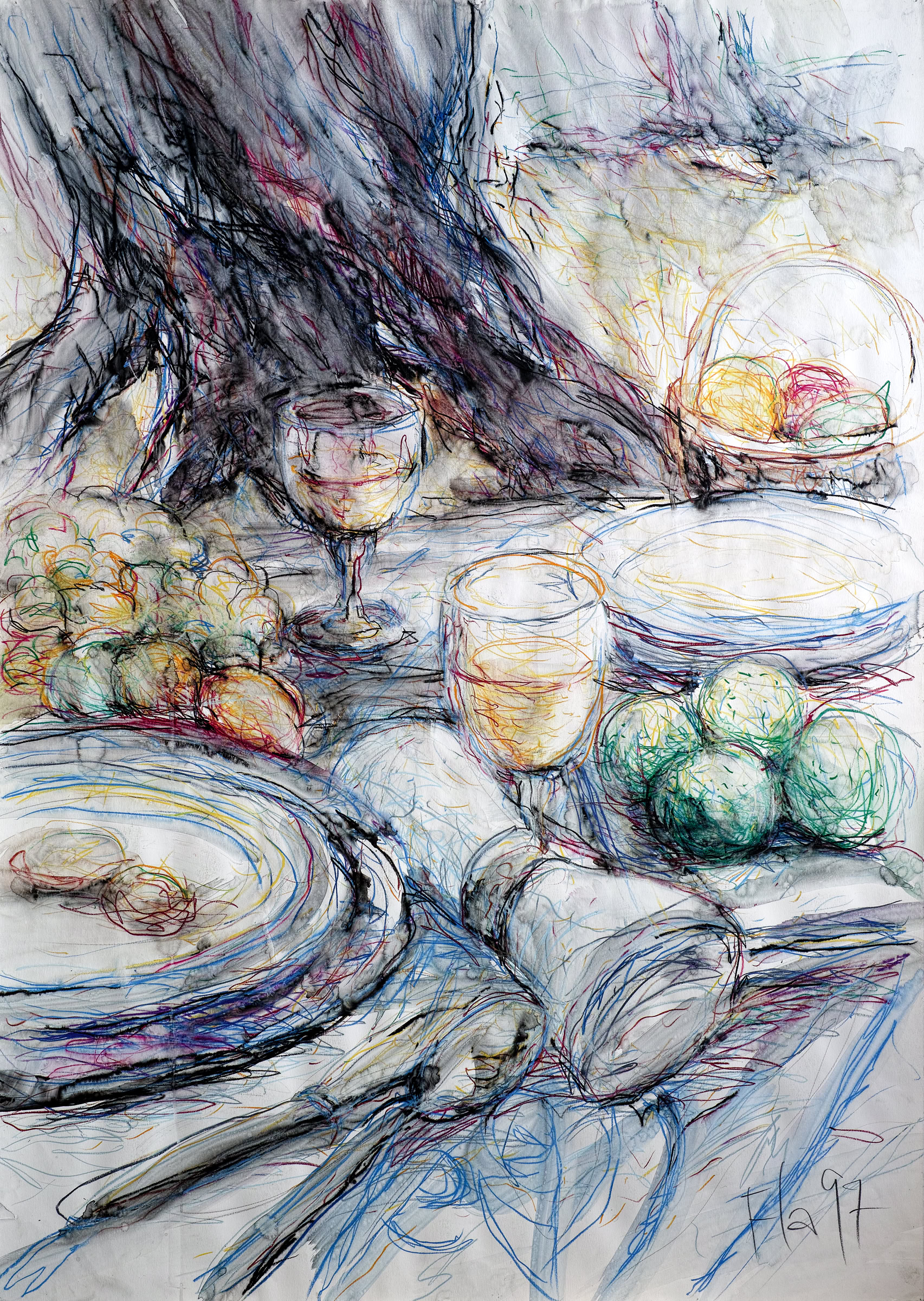 Eine große Serie über die Eindrücke, die Peter Flachmann hier erlebte, hat er vor Ort in vielen kleinen Skizzen und Fotos festgehalten. Sie dienten ihm später in seinem Atelier als Vorgabe für großformatige Malerei auf Leinwand und farbige Zeichnungen auf Karton. Einige Arbeiten aus dieser Serie sind nachfolgend zu sehen.