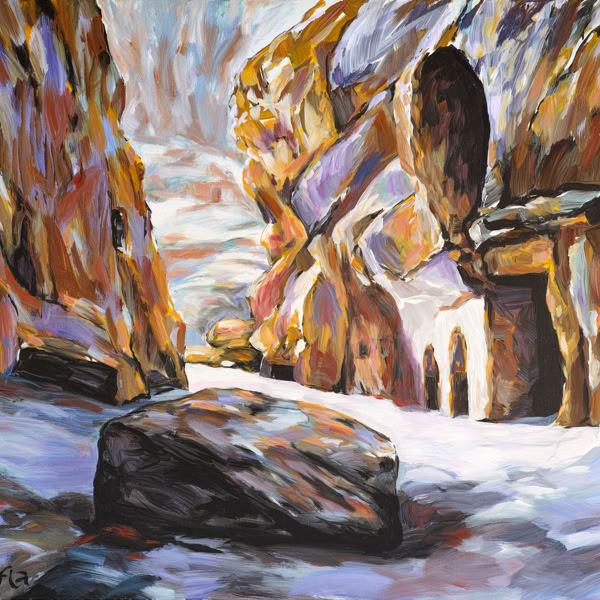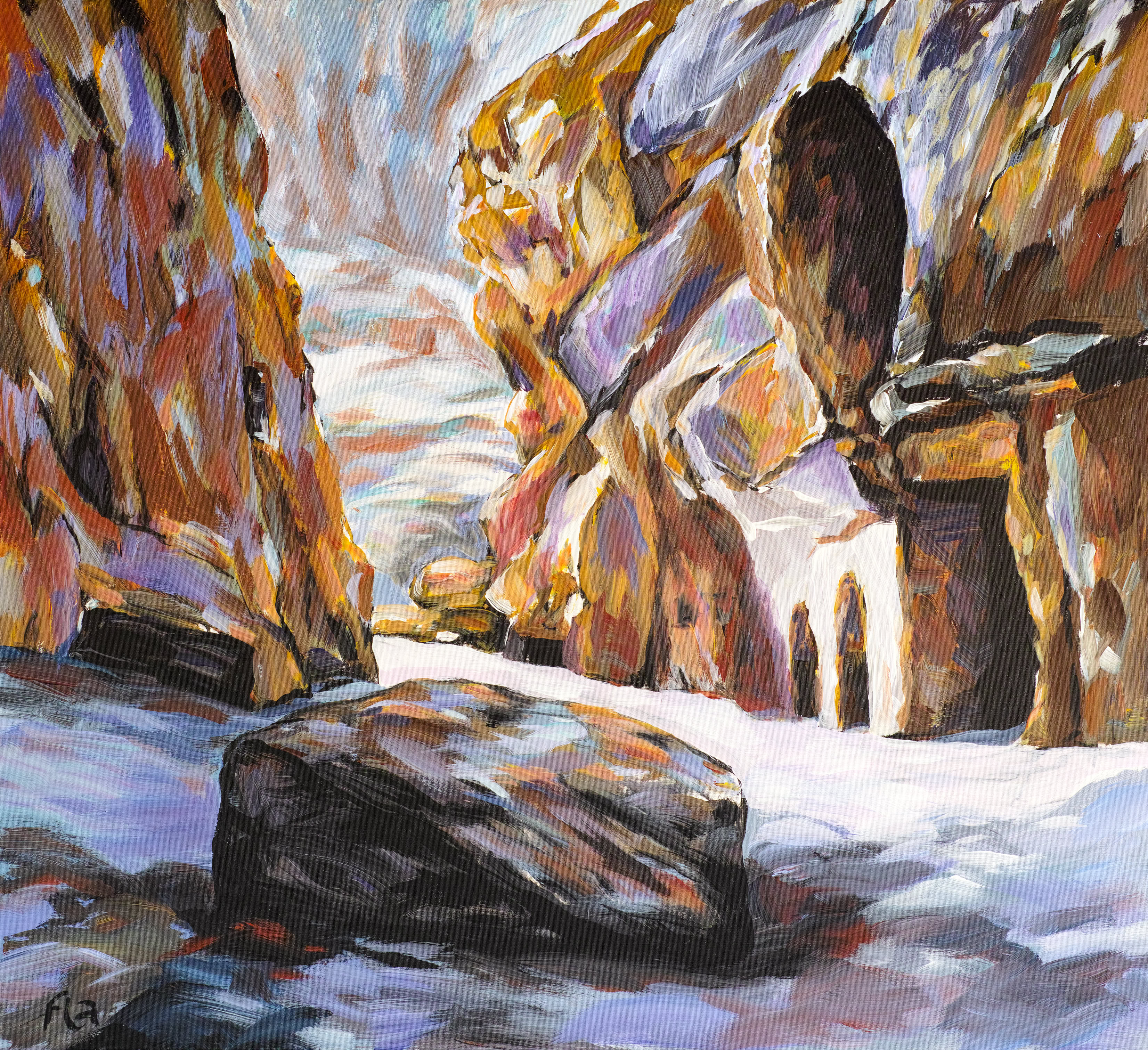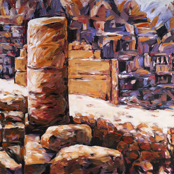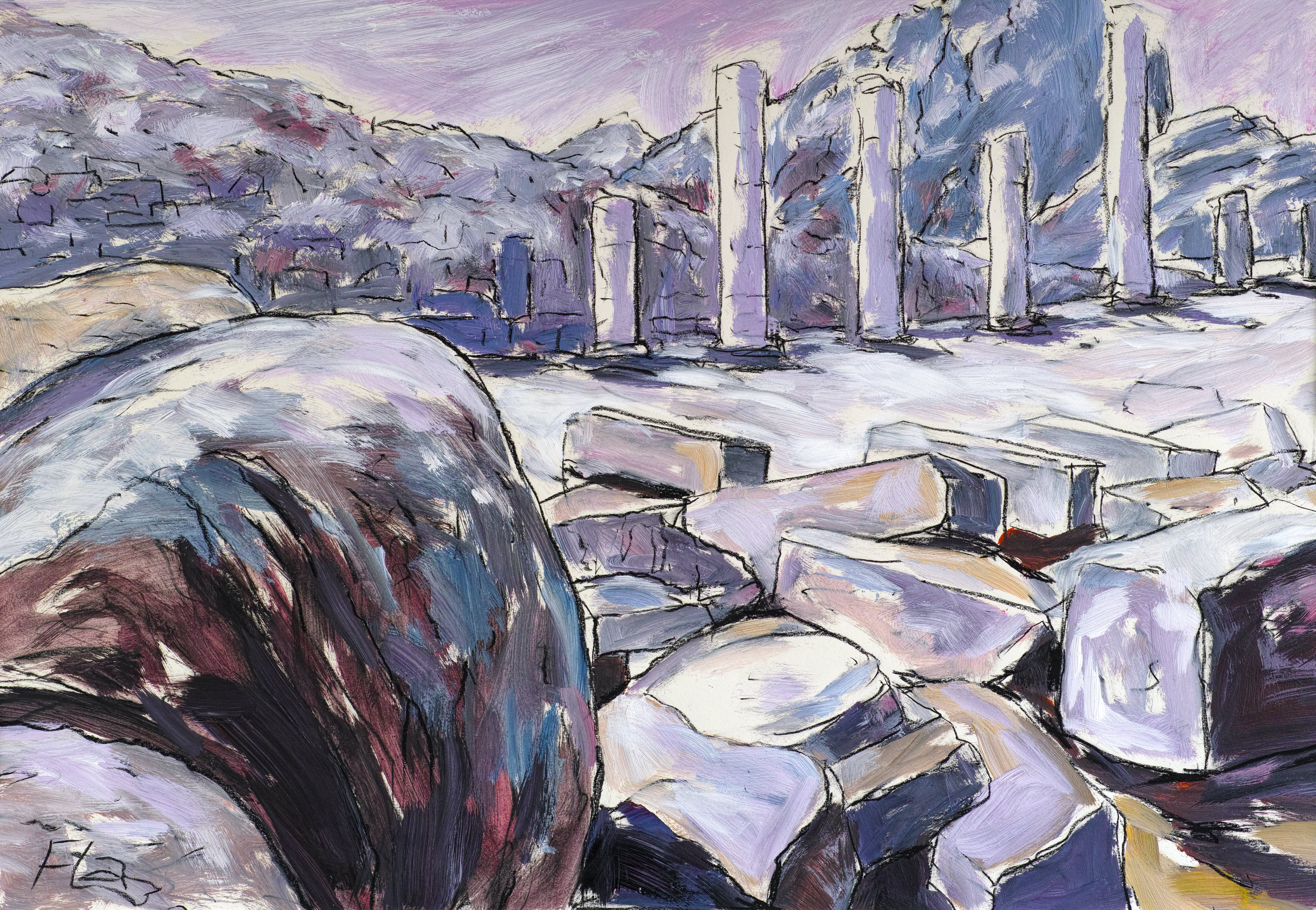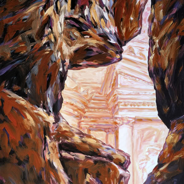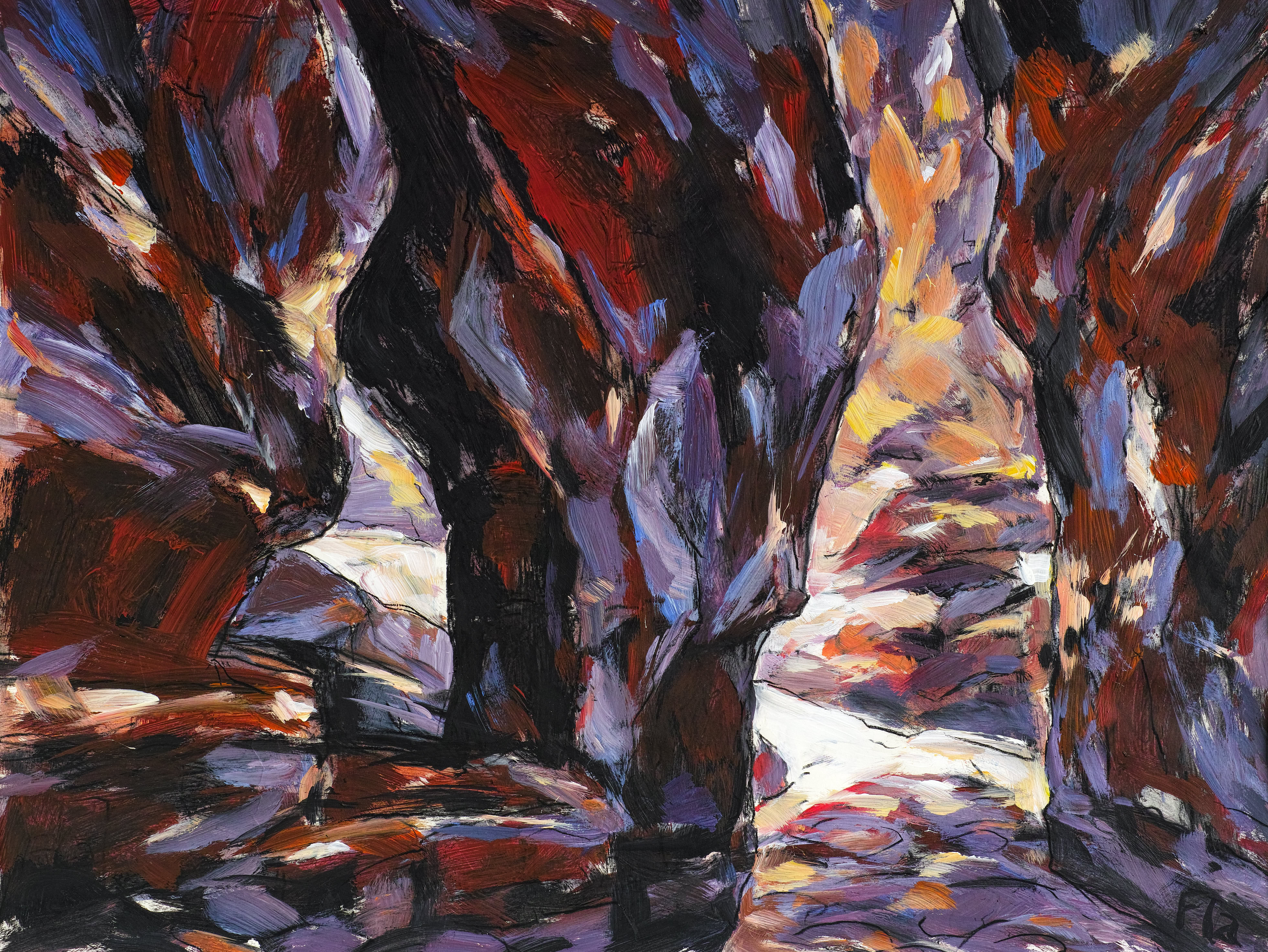 Eine Studienreise nach Petra in Jordanien ermöglichte es Peter Flachmann im Oktober 2018, sich mit dieser geheimnisvollen Hauptstadt der Nabatäer, die vor mehr als 2000 Jahren in den Shara Bergen im heutigen Jordanien erbaut wurde, intensiv künstlerisch zu beschäftigen.