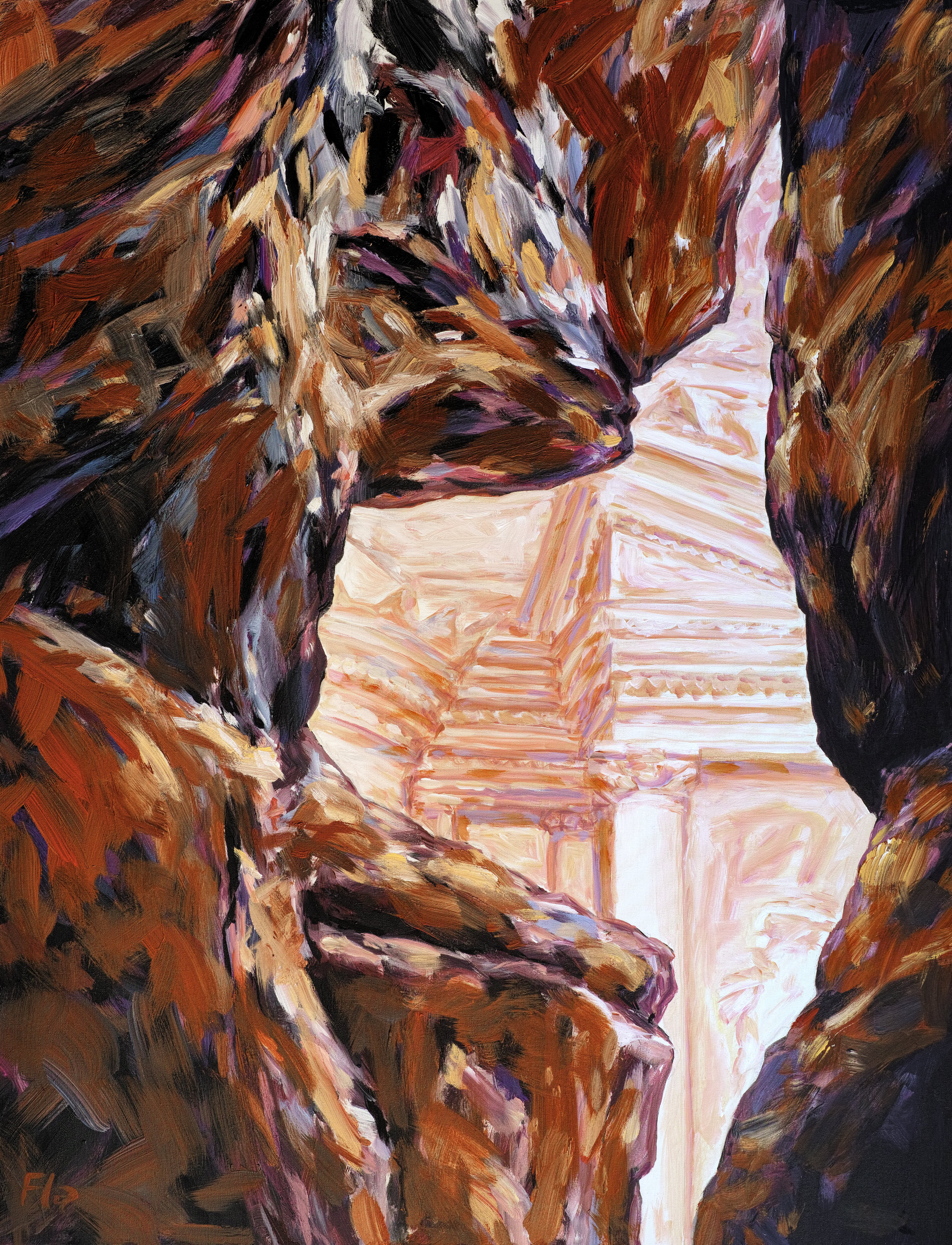 Peter Flachmann, »Al-Khazneh«, Acryl auf Leinwand, 140 x 120 cm, 2019 aus der Serie »Eine Reise nach Petra«