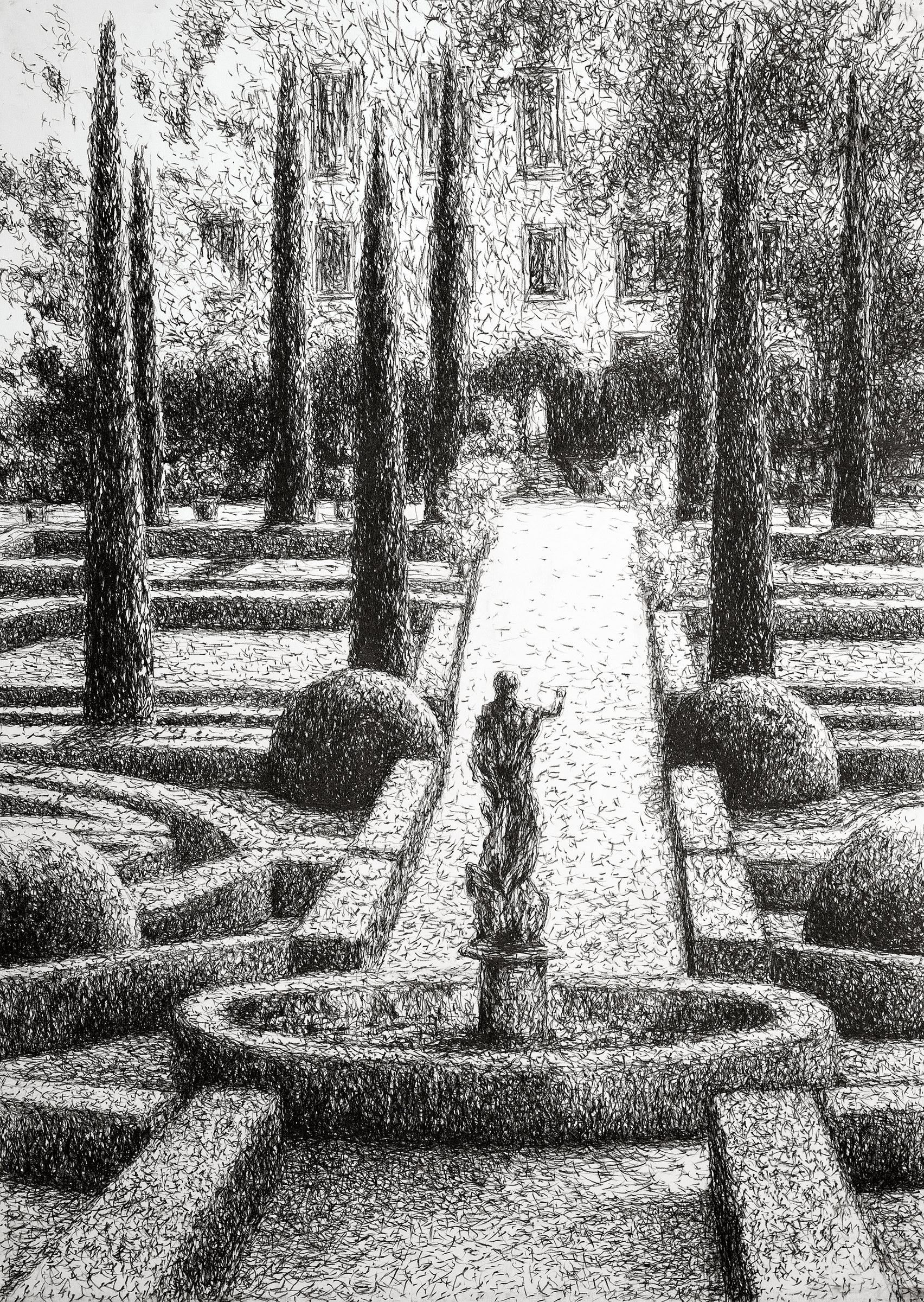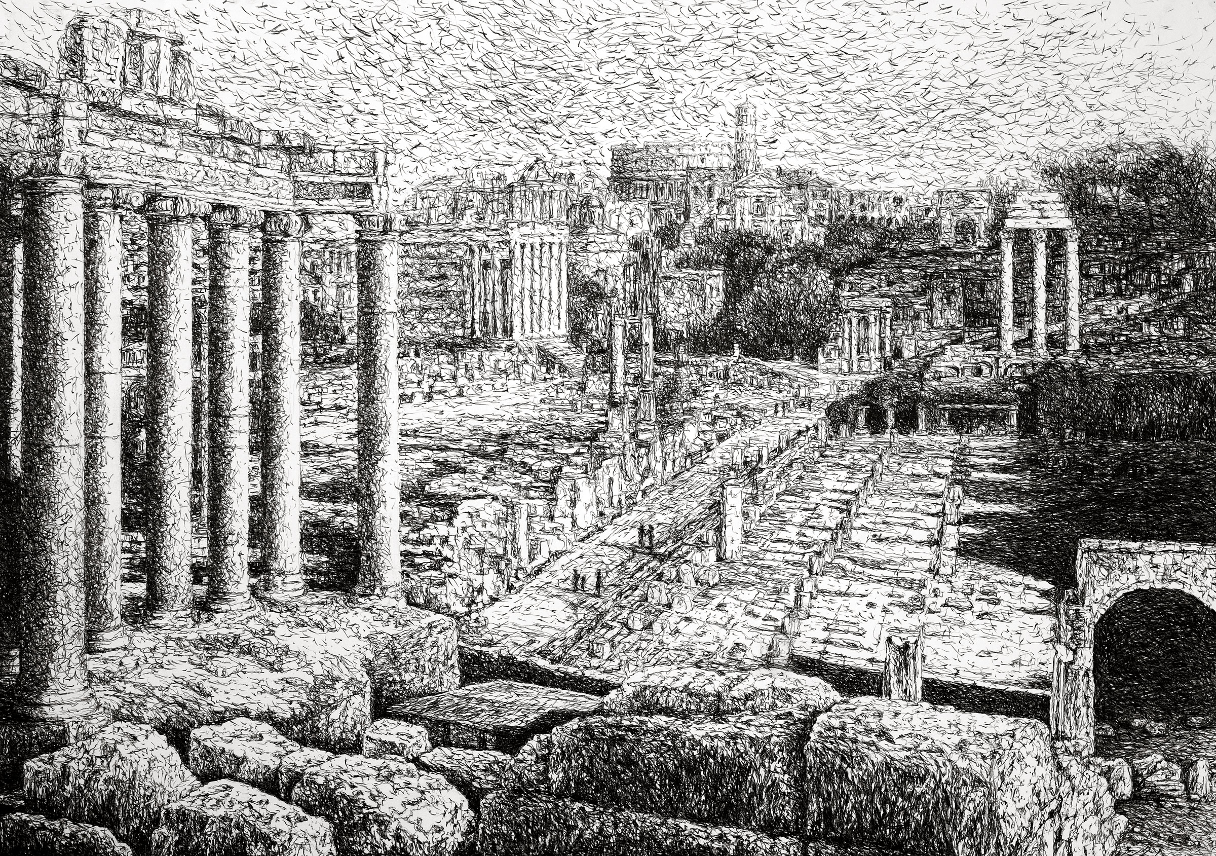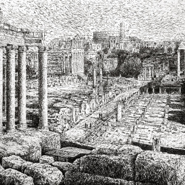 In den ordentlichen Cammer- und Haus-Ton der Kunst stimmt Peter Flachmann Goethes Notate nun wieder hinauf: indem er sich als der Zeichner betätigt, der Goethe nicht geworden war. Flachmanns Bildwerke, die er mit kühnem und entschlossenem Graphitstrich anlegt, sind dabei weitaus mehr als Illustrationen zu einem historischen Text. Zwar funktionieren sie jeweils in Verbindung mit Zitaten aus Goethes »Italienischer Reise«, doch ist jede der Veduten selbst geschaut – ganz nach dem Prinzip der Autopsie, demzufolge auch die Bildungsreisenden des 18. Jahrhunderts jeweils kontrolliert hatten, ob die Angaben in den Reiseberichten stimmten.